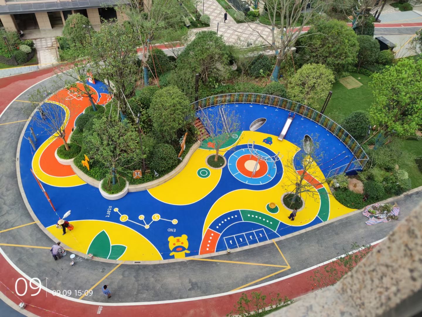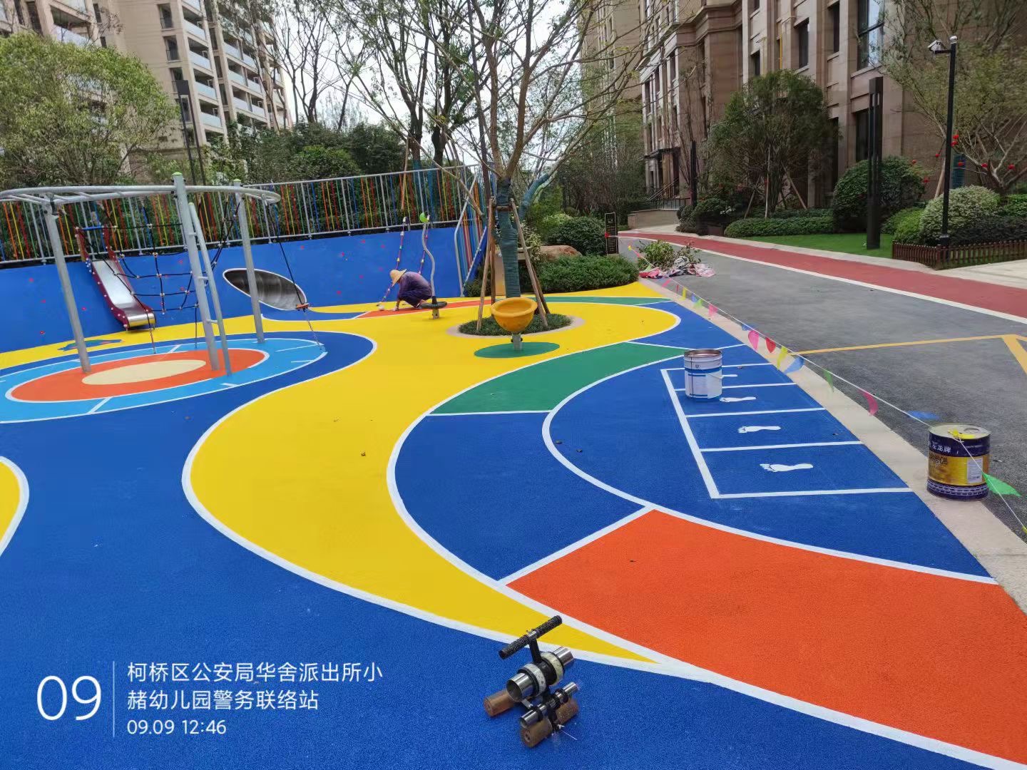 近日,我司在绍兴大越府小区的塑胶工程完工。以下是工程图片: