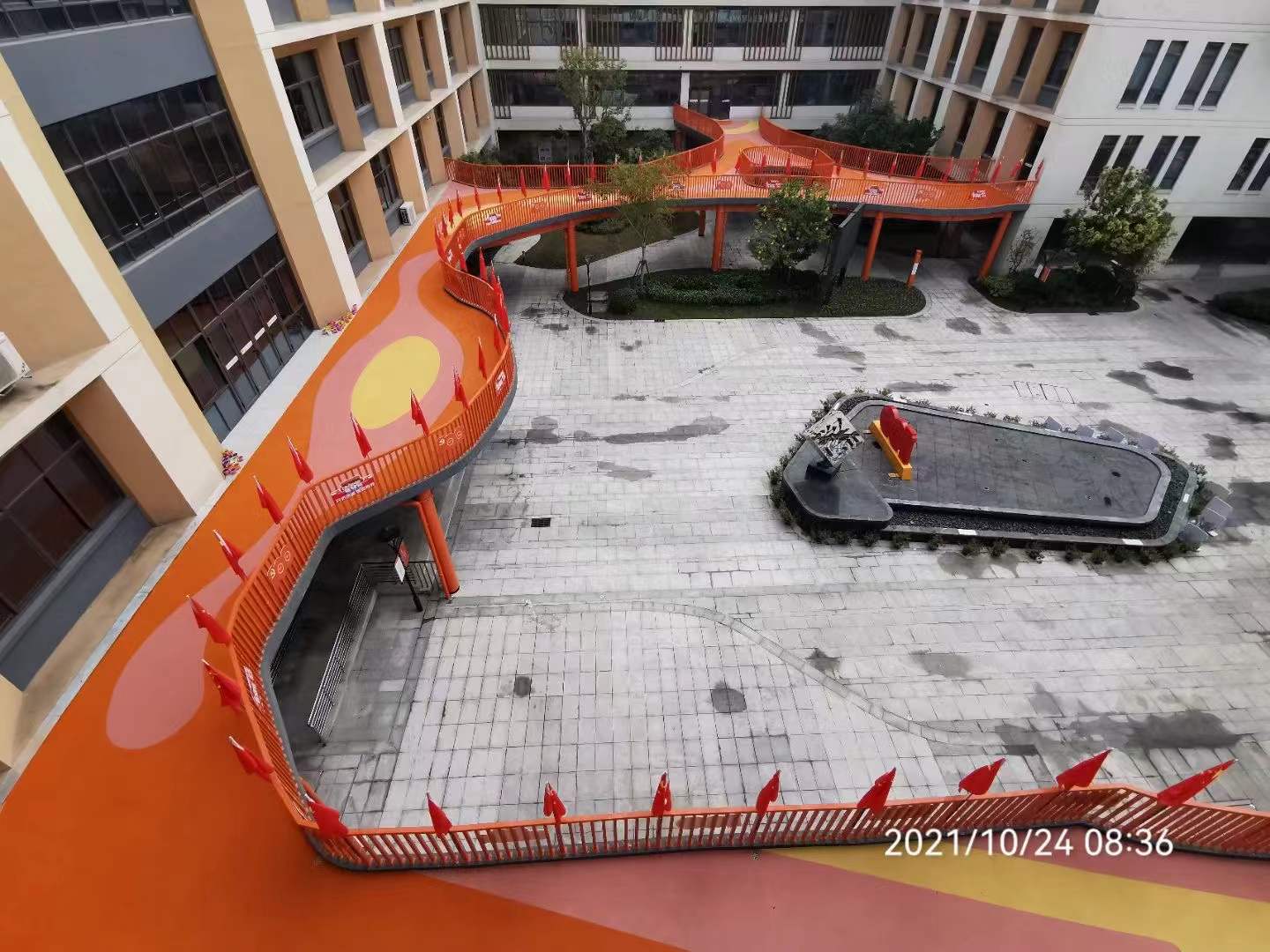 近日,我司在杭州下沙幸福河小学塑胶场地工程完成。以下是工程