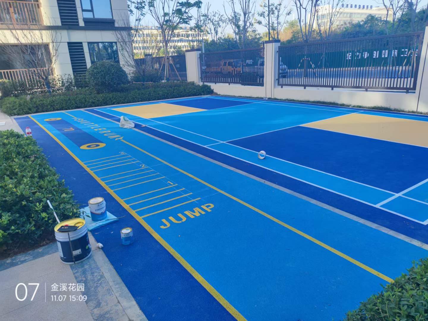 安吉梅溪沁园塑胶及步道喷色完成